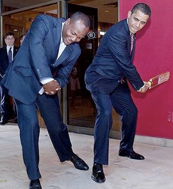 The President was pictured taking tips from West Indies legend Brian Lara in Trinidad and Tobago last year.